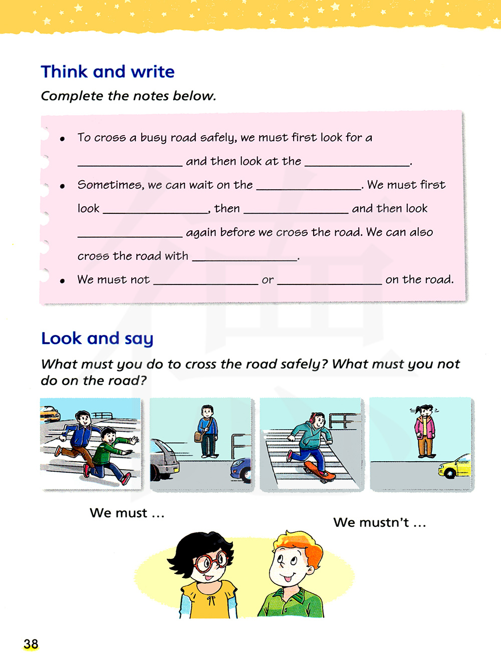 要安全地过马路,你们必须做什么?你们不能在马路上做什么?