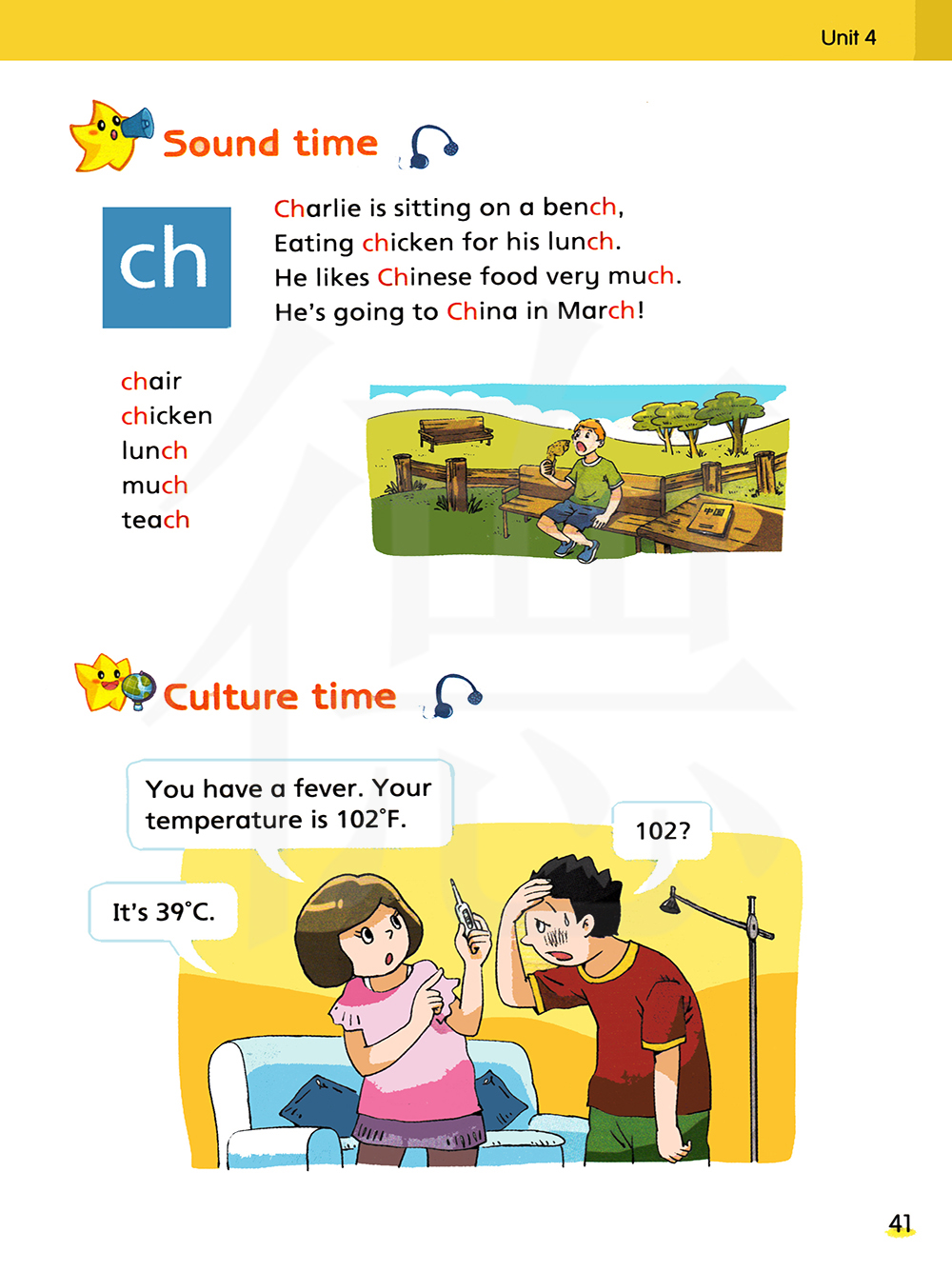 查理坐在长凳上,吃着鸡肉作为他的午餐。他非常喜欢中国的食物。他三月要去中国!