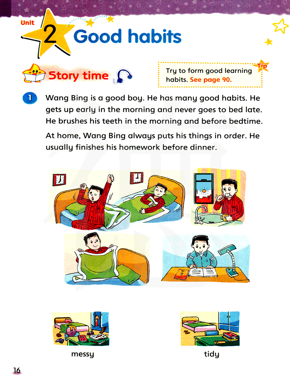 1、habit 习惯 2、tidy干净的;整齐的 3、fast 快的 4、never 从不 5、late 迟的 6、finish完成 二、三会单词与词组