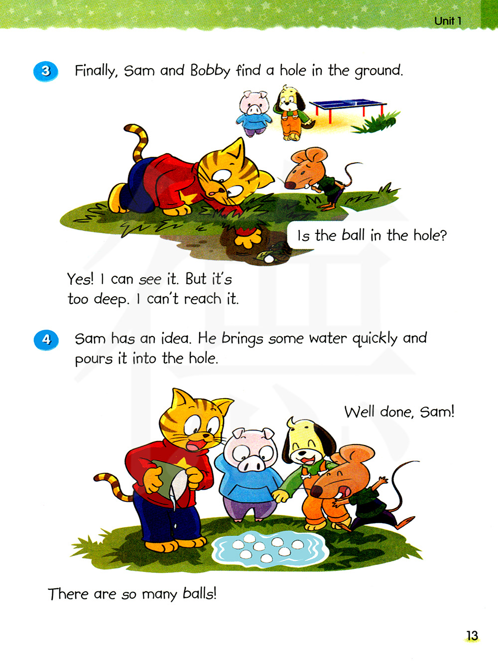 萨姆有了一个主意。他迅速地找来水,把水倒入这个洞里