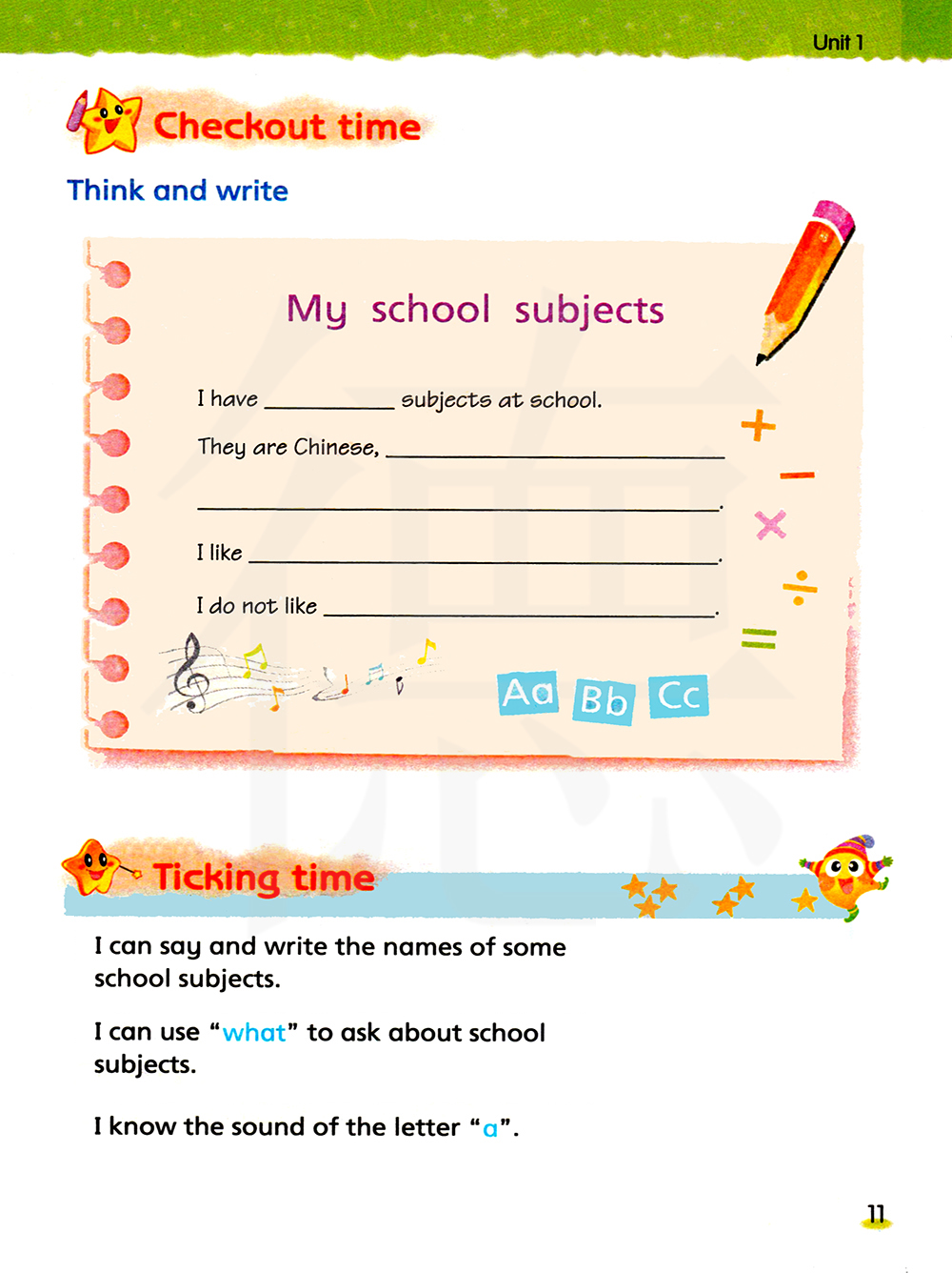 我会说和写一些学校课程的名称。