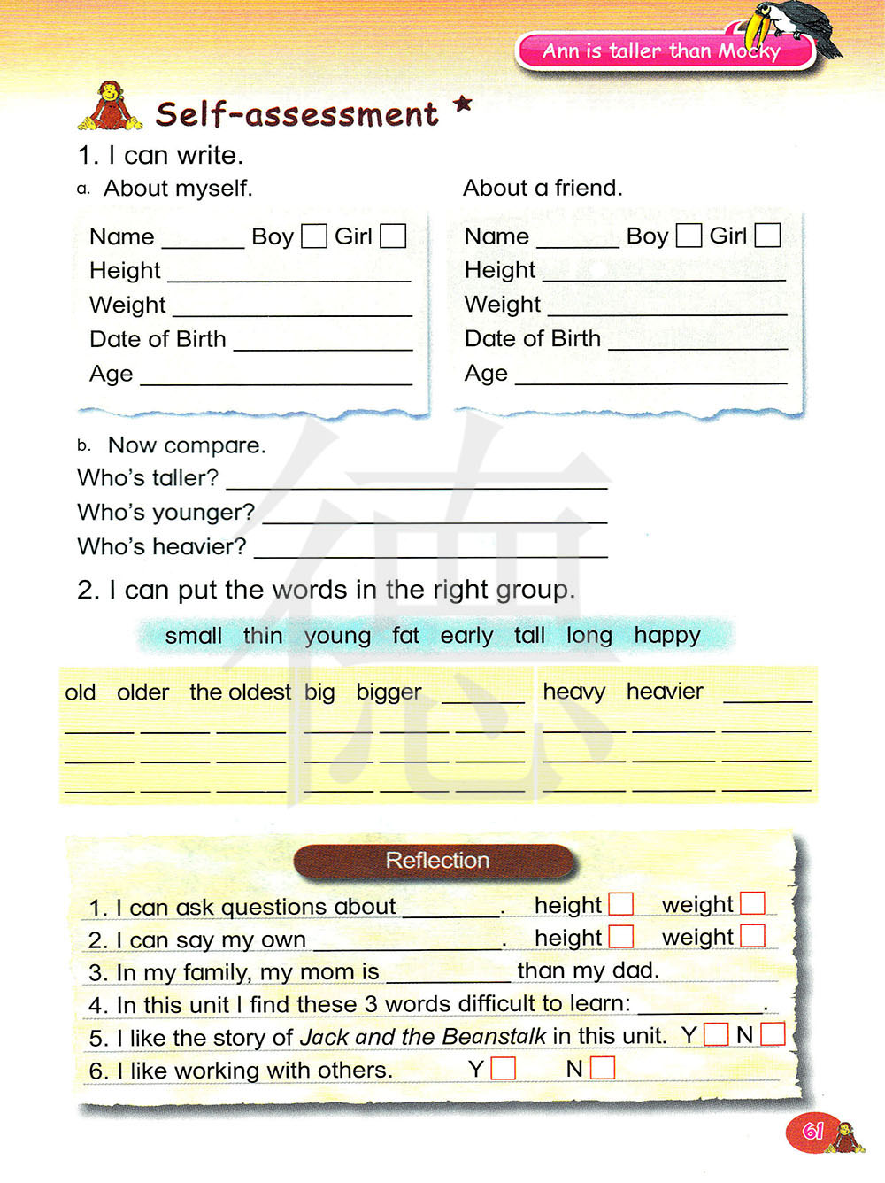小的 瘦的 年轻的 胖的 早的 高的 长的 开心的