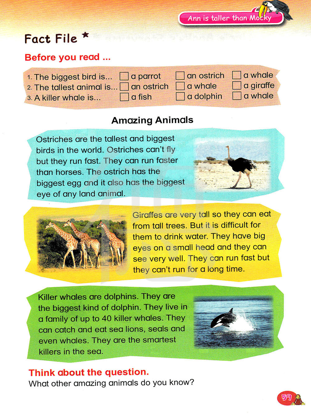 鸵鸟是世界上最高最大的鸟类。鸵鸟不会飞,但是它们跑的很快。它们跑的比马还快。鸵鸟有最大的蛋,它的眼睛也是所有陆地动物中最大的。