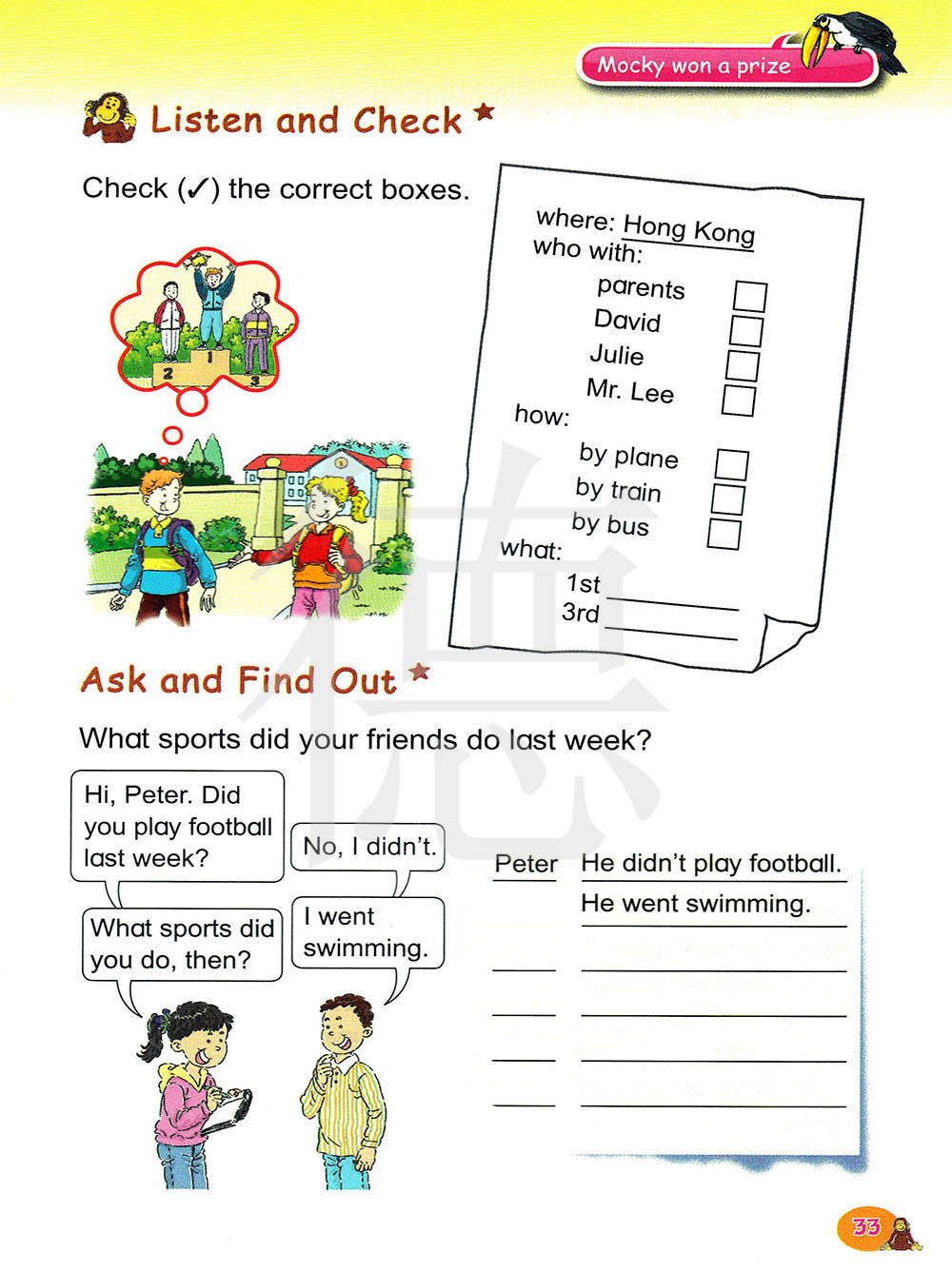 彼得 他没有去踢足球。他去游泳了。