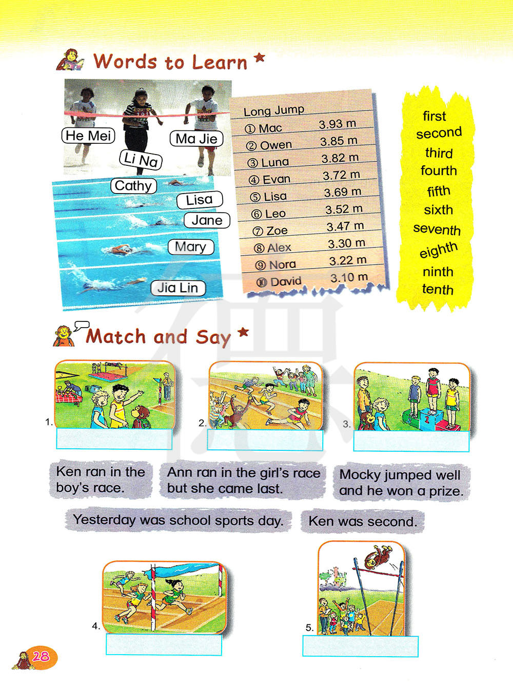 跳远 马克 3.93米 欧文 3.85米 卢娜 3.82米 埃文 3.72米 丽萨 3.69米 利奥 3.52米 佐伊 3.47米 亚力克斯 3.30米 诺拉 3.22米 大卫 3.10米