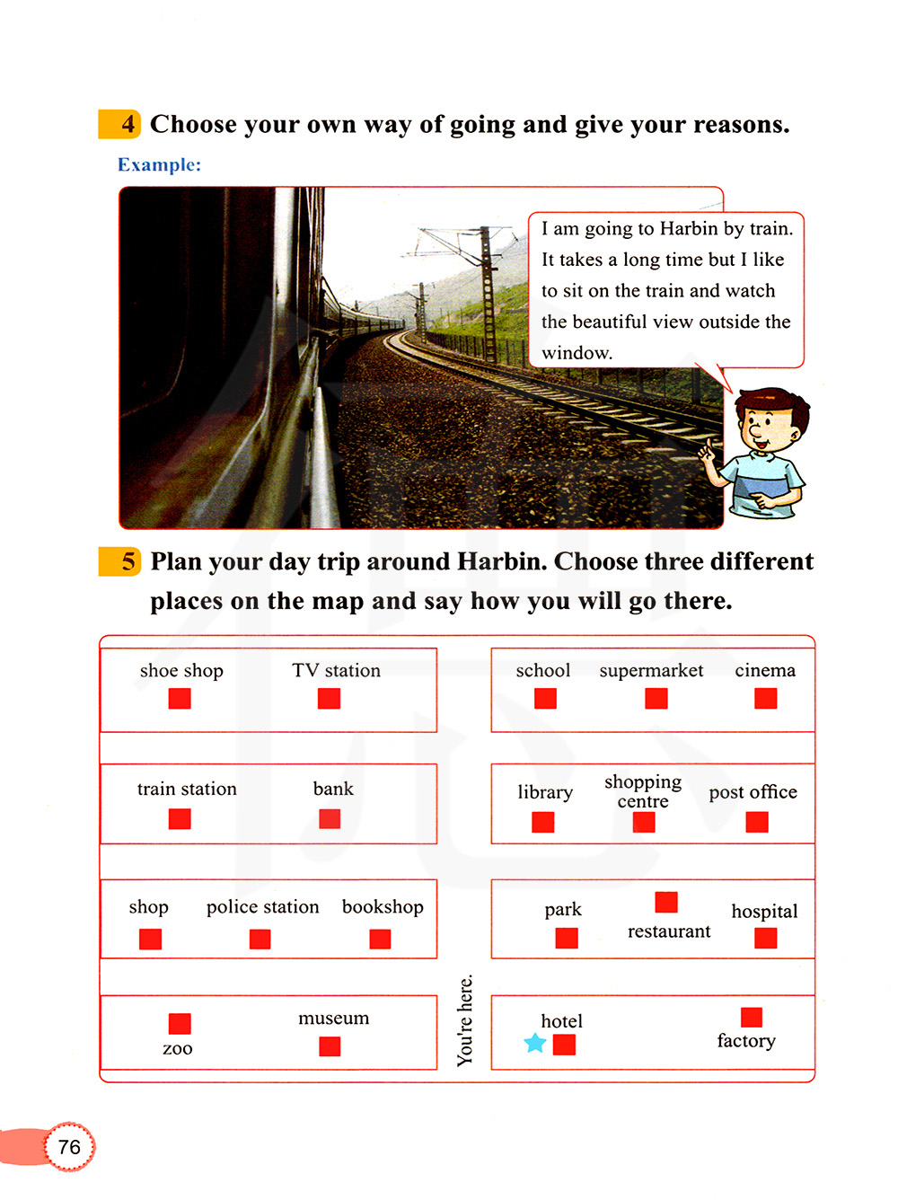 制定哈尔滨一日游的计划,在地图上选三个不同的地点并说一说你将怎样去那里。