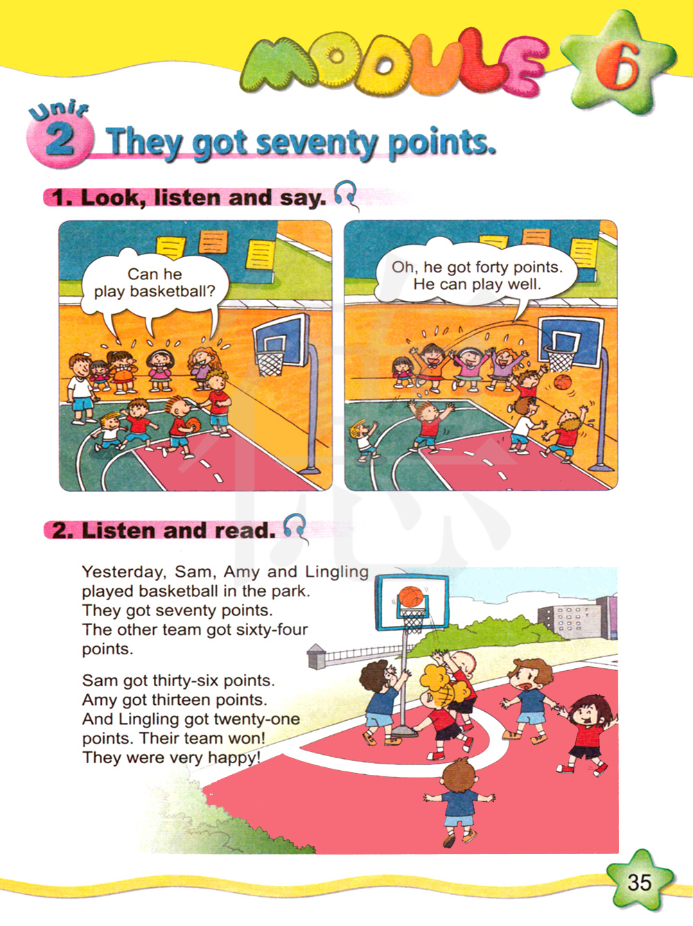 萨姆得了36分。艾米得了13分。还有玲玲得了21分。他们的队伍获胜了!他们非常开心。