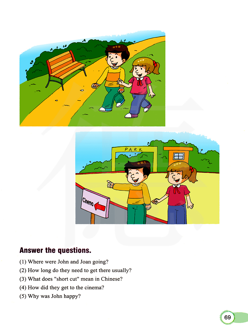 在汉语中是什么意思?他们怎么到达电影院的?约翰为什么高兴?