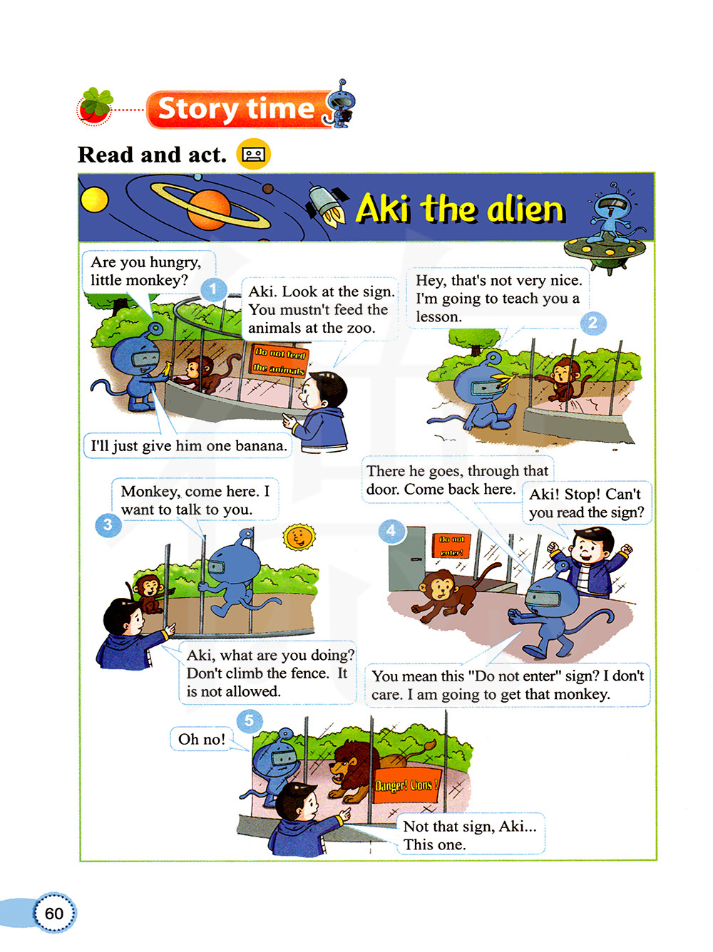阿基,看指示牌。你不能给动物园的动物喂食。