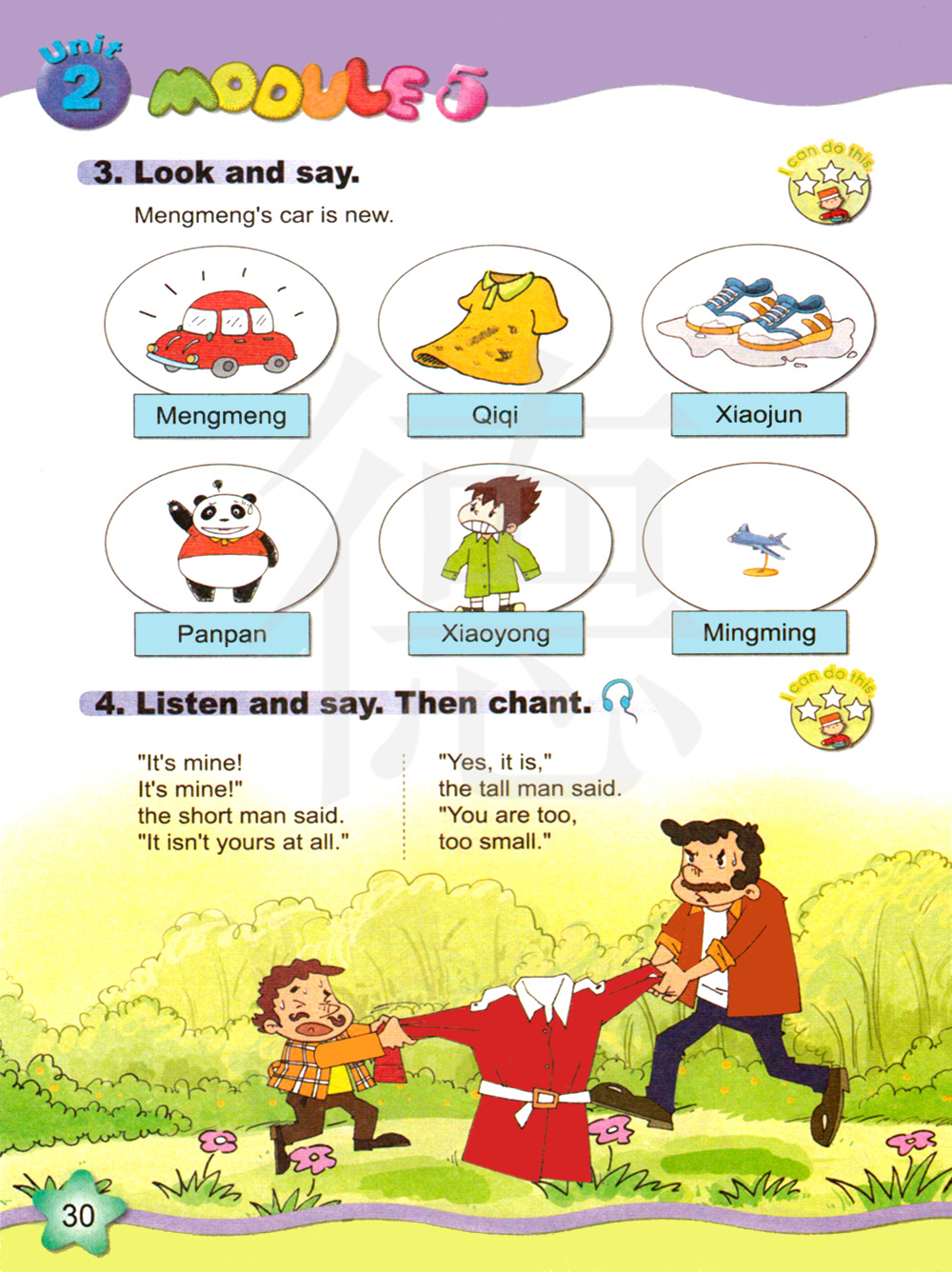 “这是我的!这是我的!”矮个子男人说。“这根本就不是你的。”“是的,它是,”高个子男人说。“你太,矮了。”