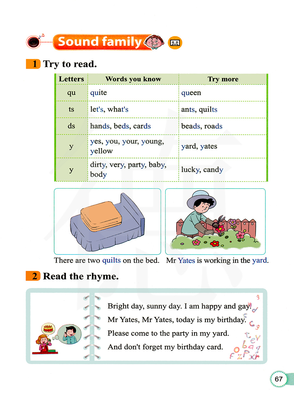 明亮的一天,晴朗的一天。我很高兴很快乐。亚特先生,亚特先生,今天是我的生日。请来参加在我的院子里举办的派对吧。别忘了我的生日卡片哦。