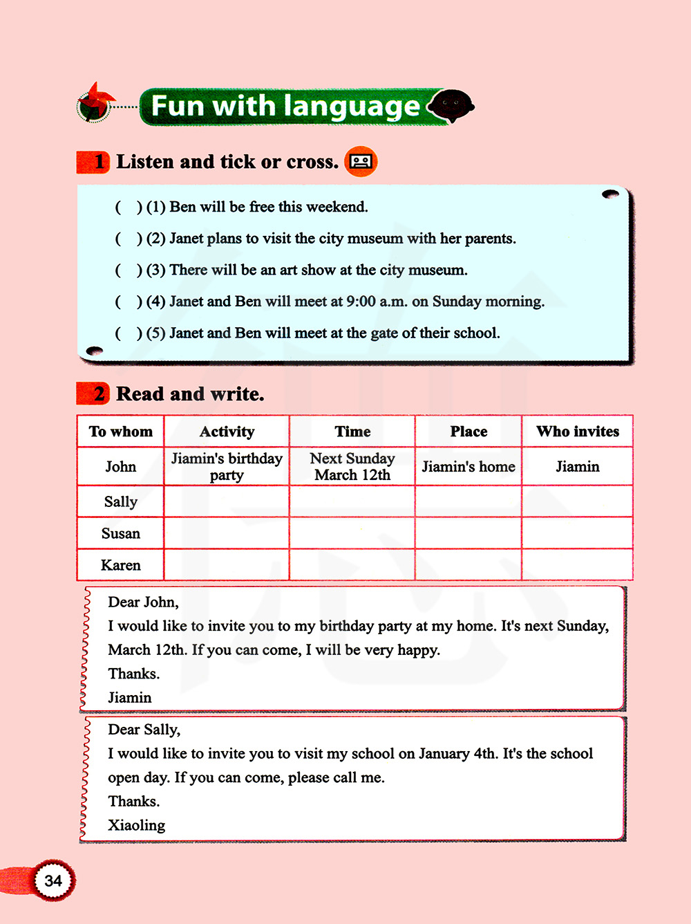 听录音,判断正误,正确的打对勾,错误的画叉号。