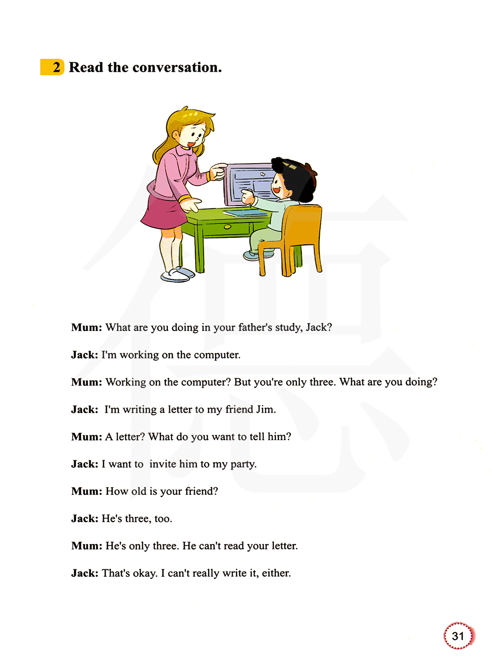 他也三岁了。他只有三岁。他看不懂你的信。没关系啊。实际上我也不会写。