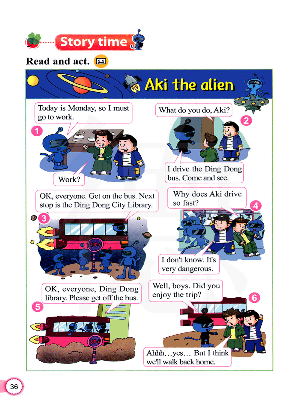 好了,各位。上车吧。下一站是叮咚城市图书馆