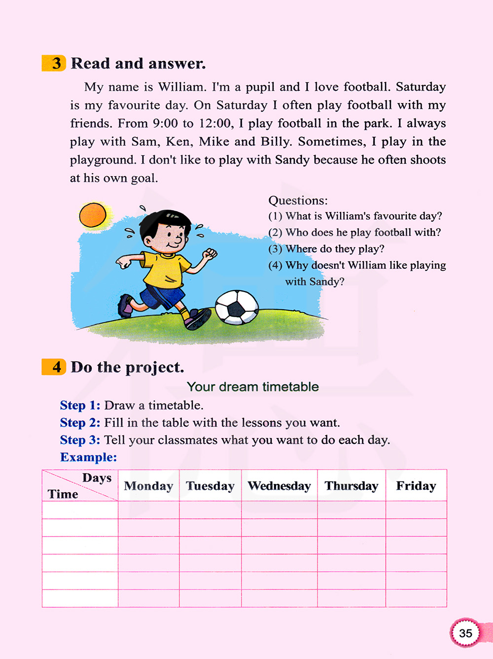 威廉最喜欢哪一天?他和谁一起踢足球?