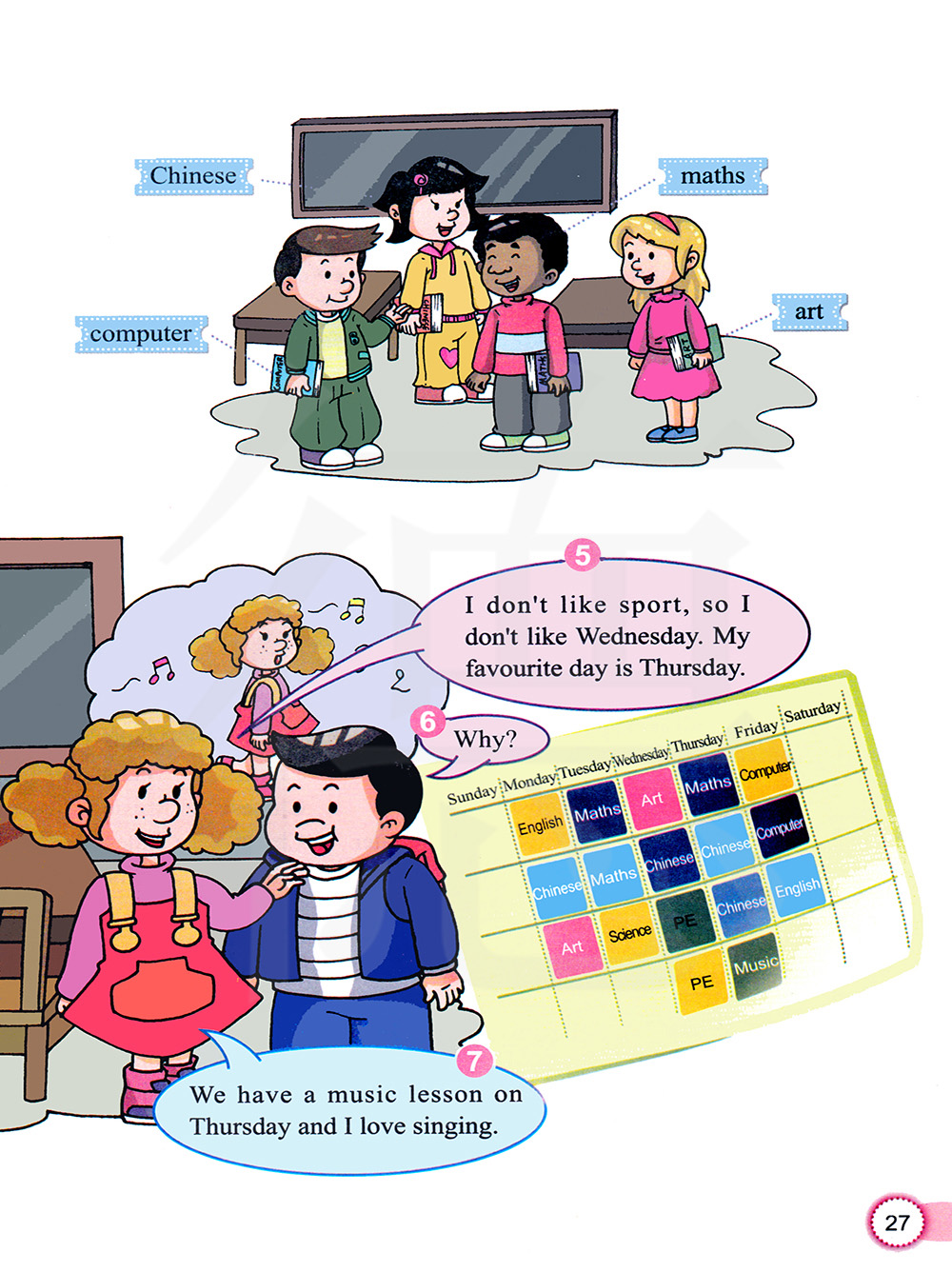 我不喜欢运动,所以我不喜欢星期三。我最喜欢的一天是星期四
