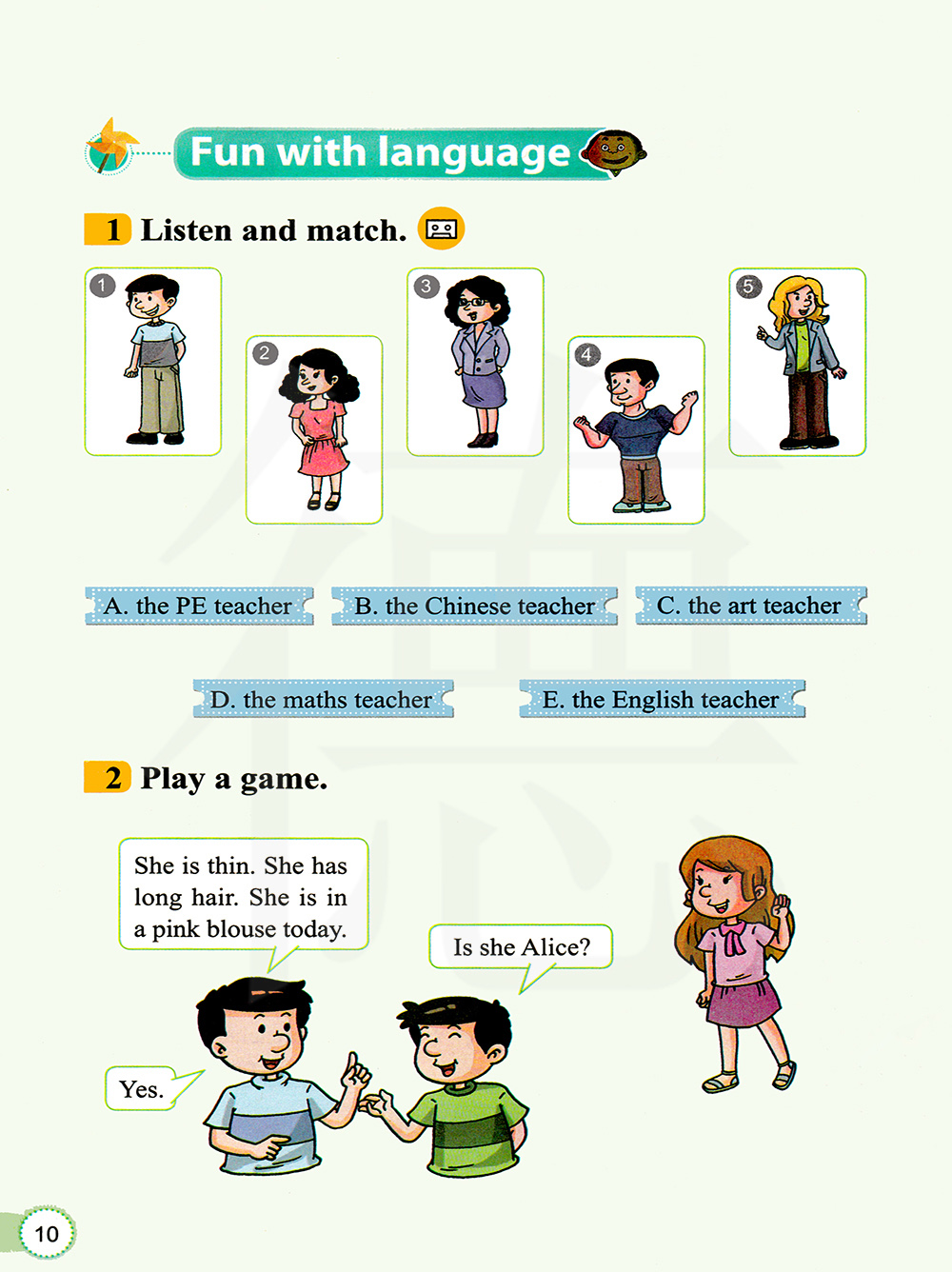 她很瘦,长着长长的头发。她今天穿着一件粉红色的衬衫