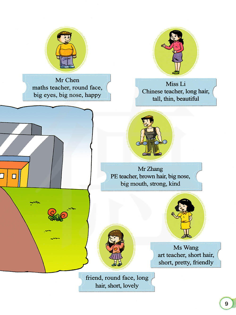 陈老师,数学老师,圆脸,大眼睛,大鼻子,开心