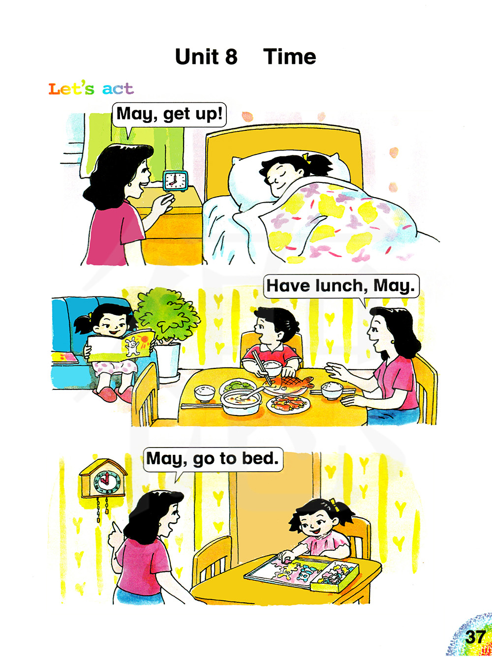 1、 课时 Unit8 Time 能认读Let’s learn中的七个单词;能听懂Let’s act中的句子并作出反应;Let’s talk会问时间并简单回答;What time is it? It’s… o’clock;会说Let’s play中的句子,表达时间.理解并表演let’s enjoy部分的故事;字母:Y y的认读;七个表示有关时间的单词;会问时间并简单回答.What time is it? It’s… o’clock ;Let’s learn中的单词认读;到实际情景中问答,时间表达。
