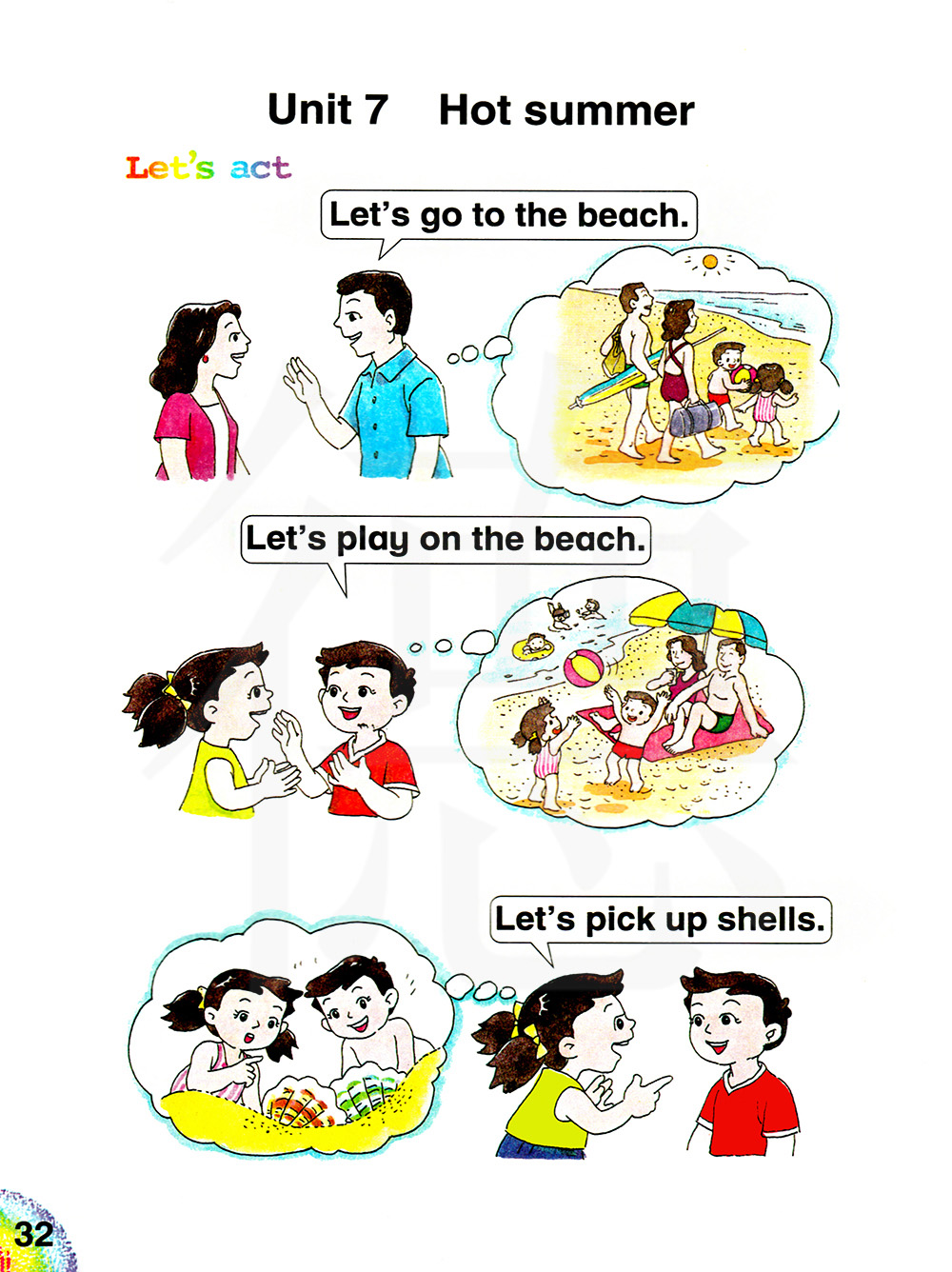 1、 课时 Unit7 Hot summer 能认读Let’s learn中的七个表示有关夏天的单词;能听懂Let’s act中的句子并作出反应;Let’s talk会描述夏天;会说Let’s play中的句子,理解并诵读let’s enjoy部分的小诗;字母:Y y的认读;七个表示有关夏天的单词;会描述夏天; Let’s learn中的单词认读;能把有关的新语言点运用到实际情景中。