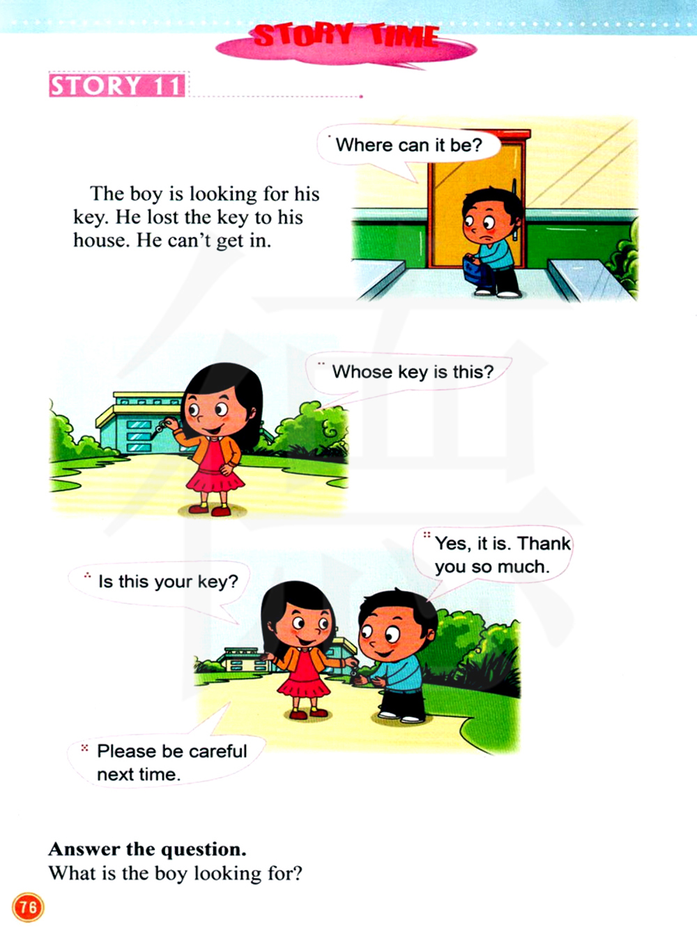 回答问题。这个男孩在找什么?