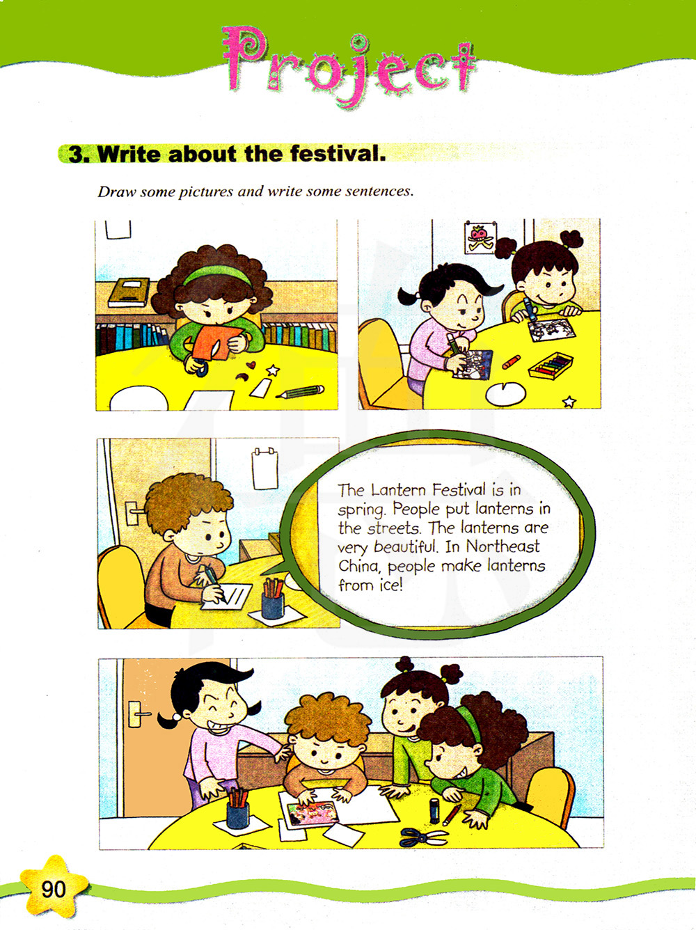 元宵节是在春天。人们在大街上拿着灯笼。灯笼很漂亮。在中国的东北,人们用冰来制作灯笼!