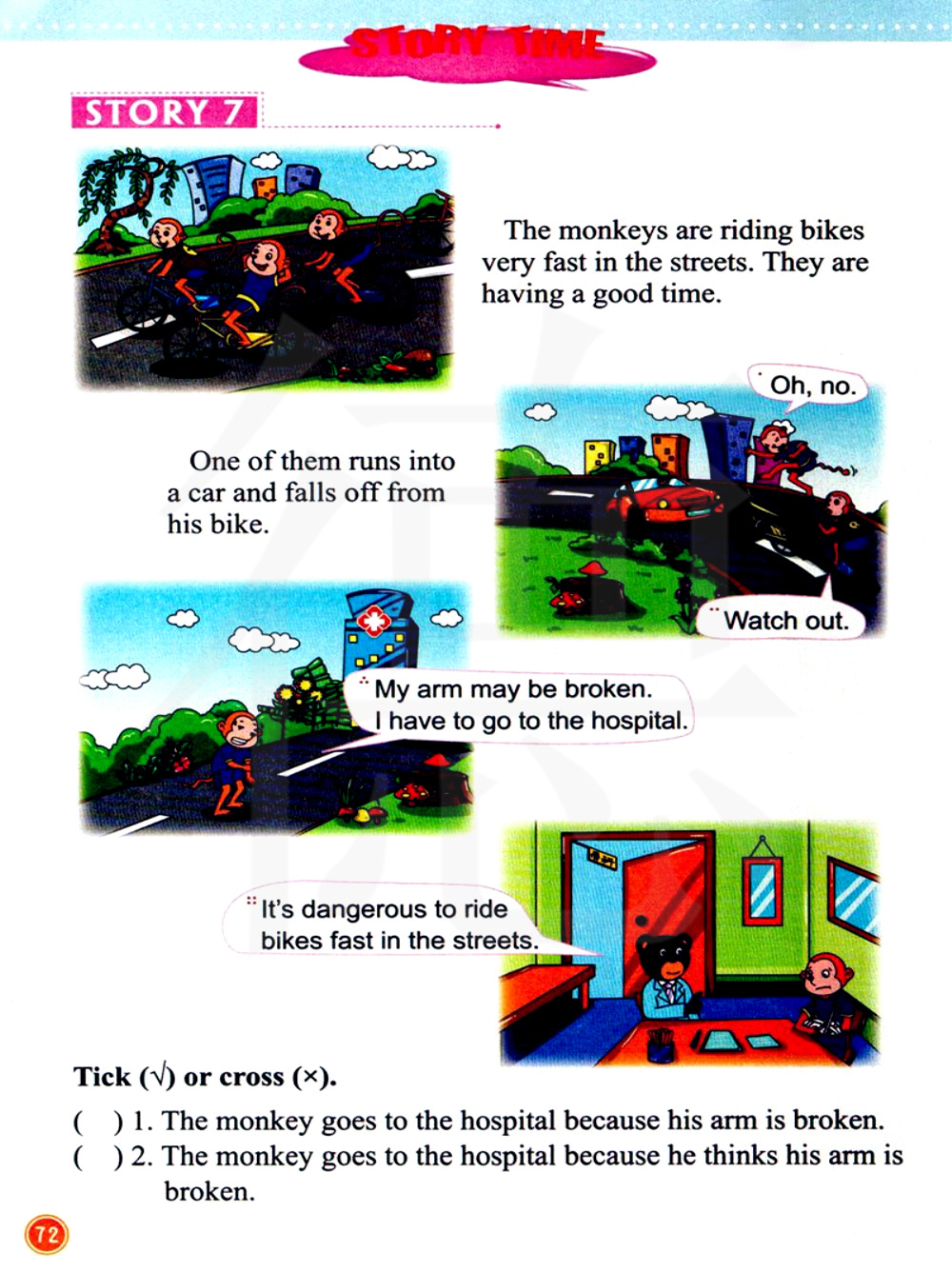 1.猴子去了医院,因为他的胳膊摔断了。2.猴子去了医院,因为他认为他的胳膊摔断了。