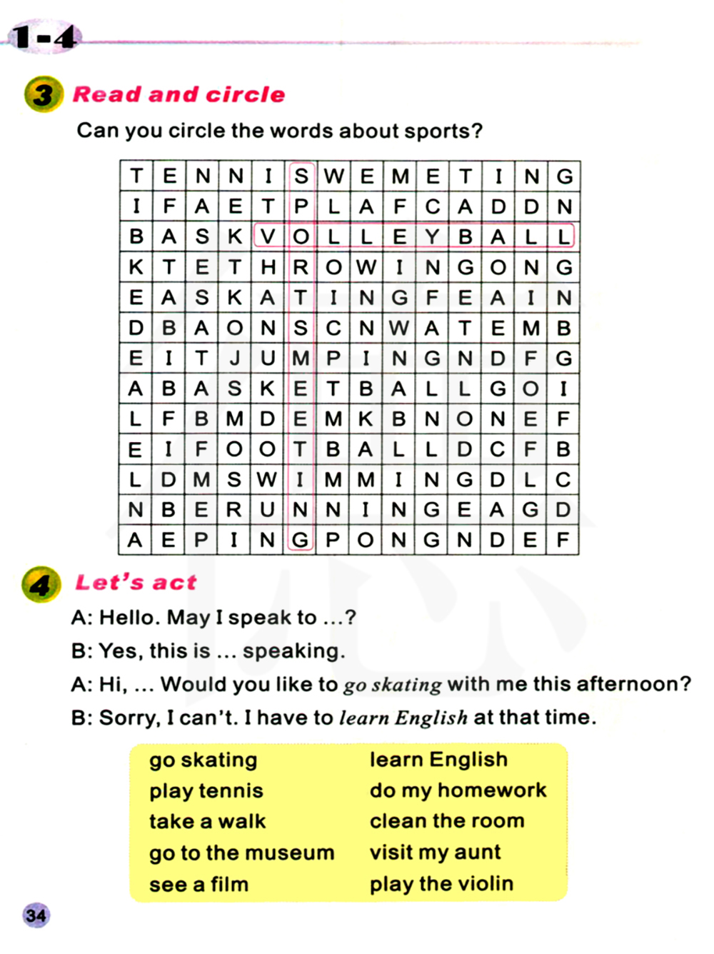 嗨,......今天下午你想和我去溜冰吗?对不起,我不可以。我那个时候必须去学英语。
