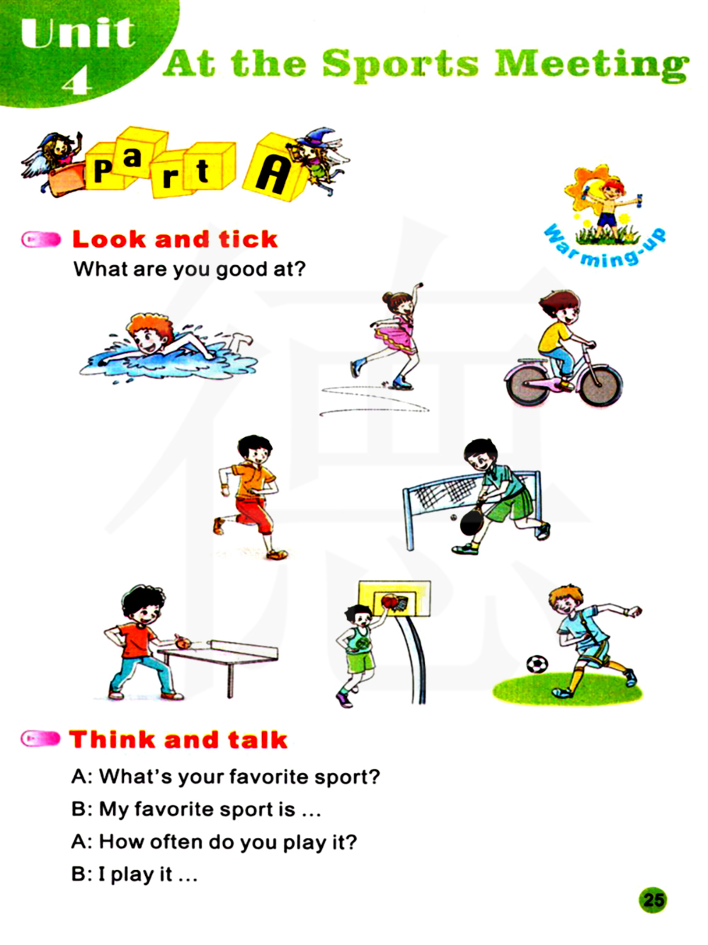 Have a sports meeting. Throwing. 100- meter race. Long jump. High jump. Running race. The relay race.