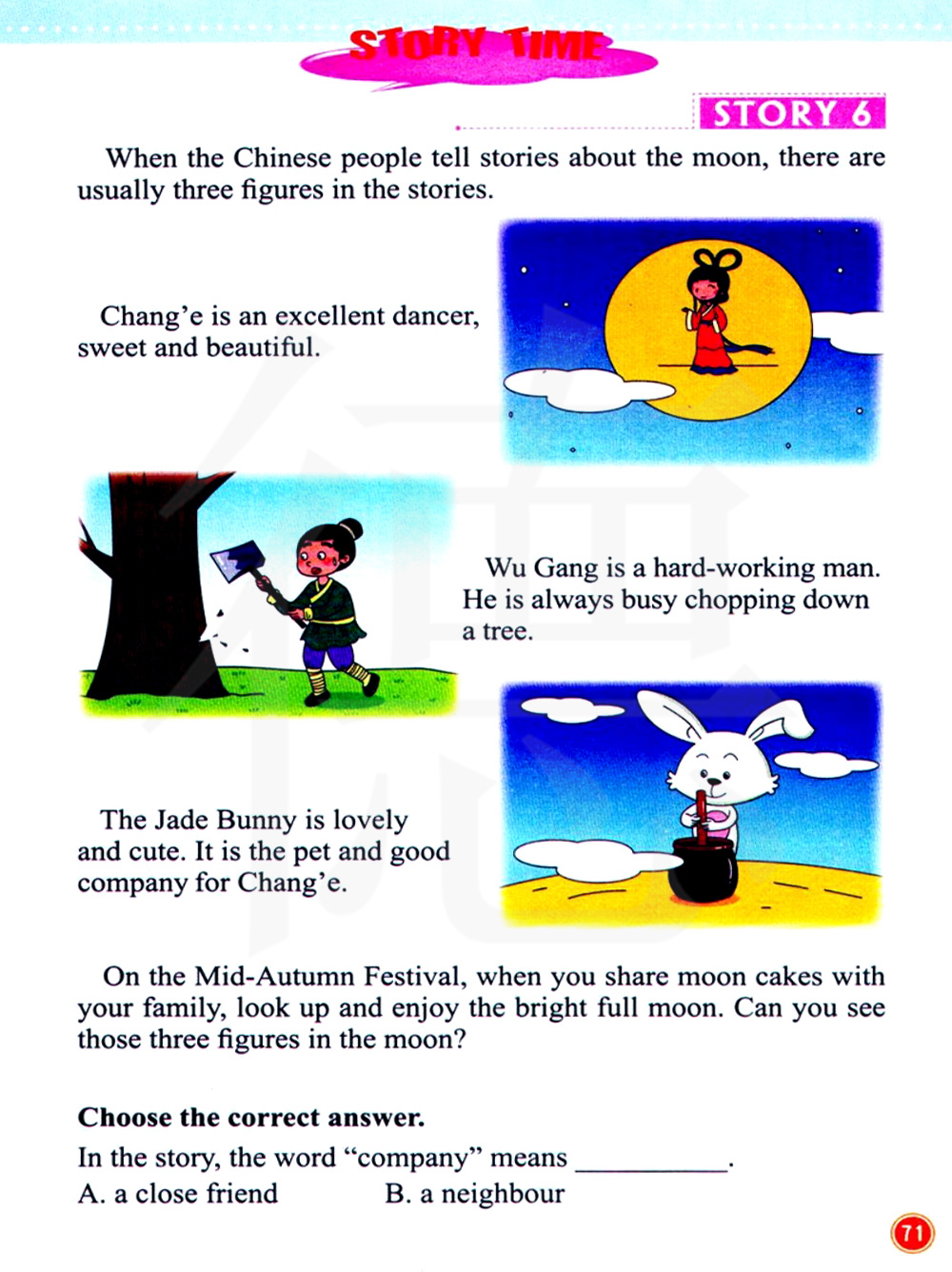 当中国人讲到关于月亮的故事时, 故事里通常有三个人物。