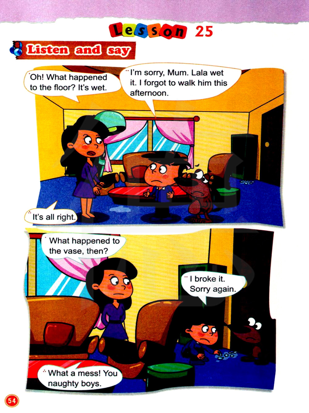对不起,妈妈。拉拉把它弄湿了。 .我今天下午忘了遛它了。