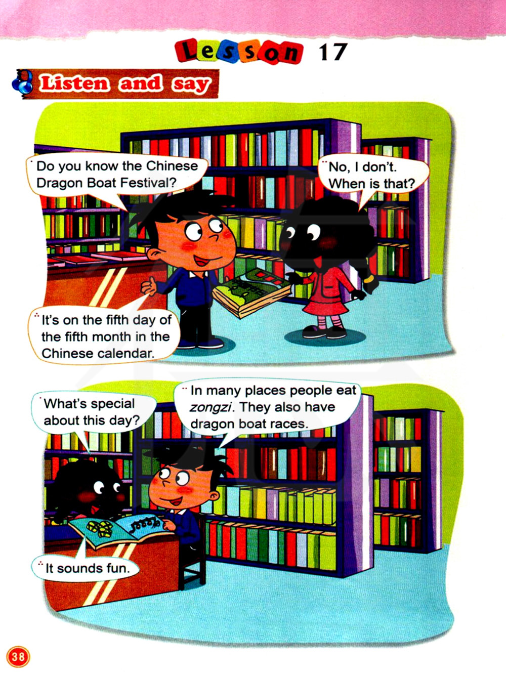 在很多地方,人们吃粽子。 .他们还举行龙舟赛。