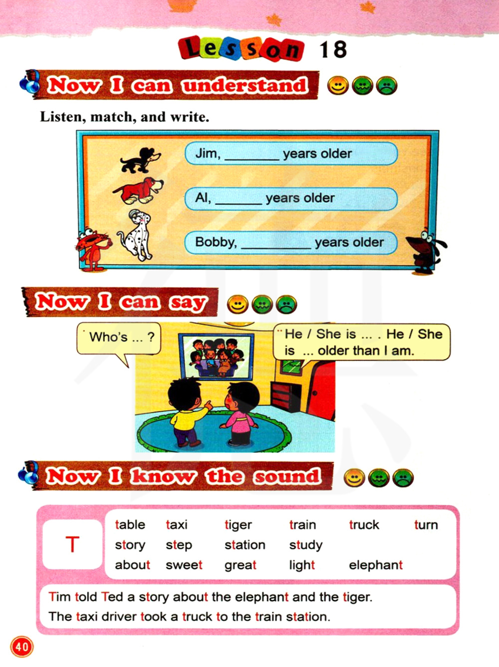 桌子 出租车 老虎 火车 卡车 转,故事 步 站 学习,关于 甜的 太好了 轻的 大象