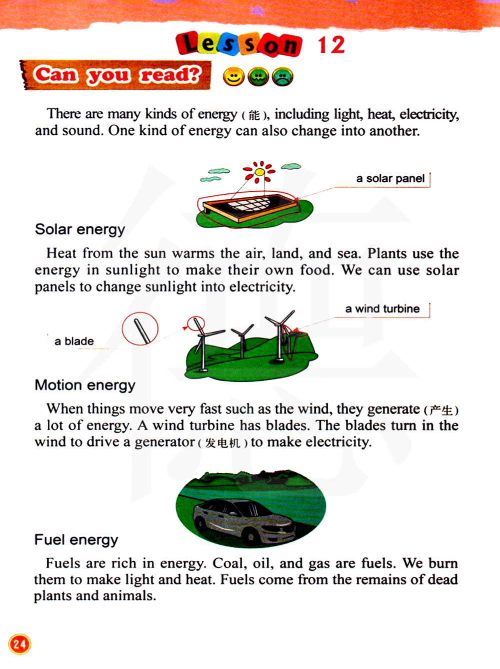 燃料有丰富的能源。煤、石油和天然气都是燃料。我们燃烧它们制造光和热。燃料来自死去的植物残留和动物的遗体。