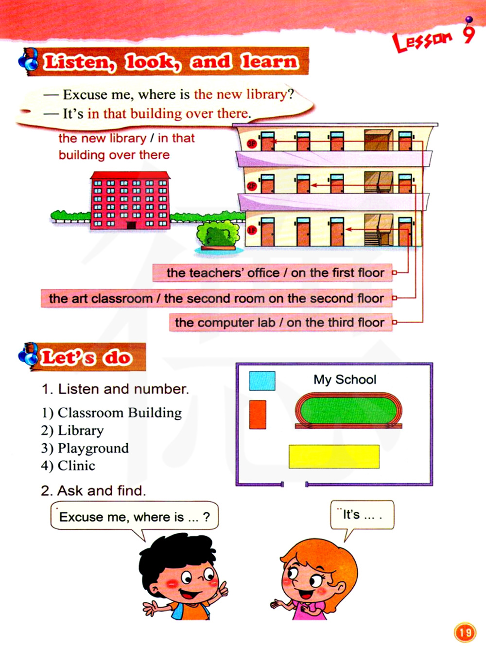 1.听录音并在图中标上数字。