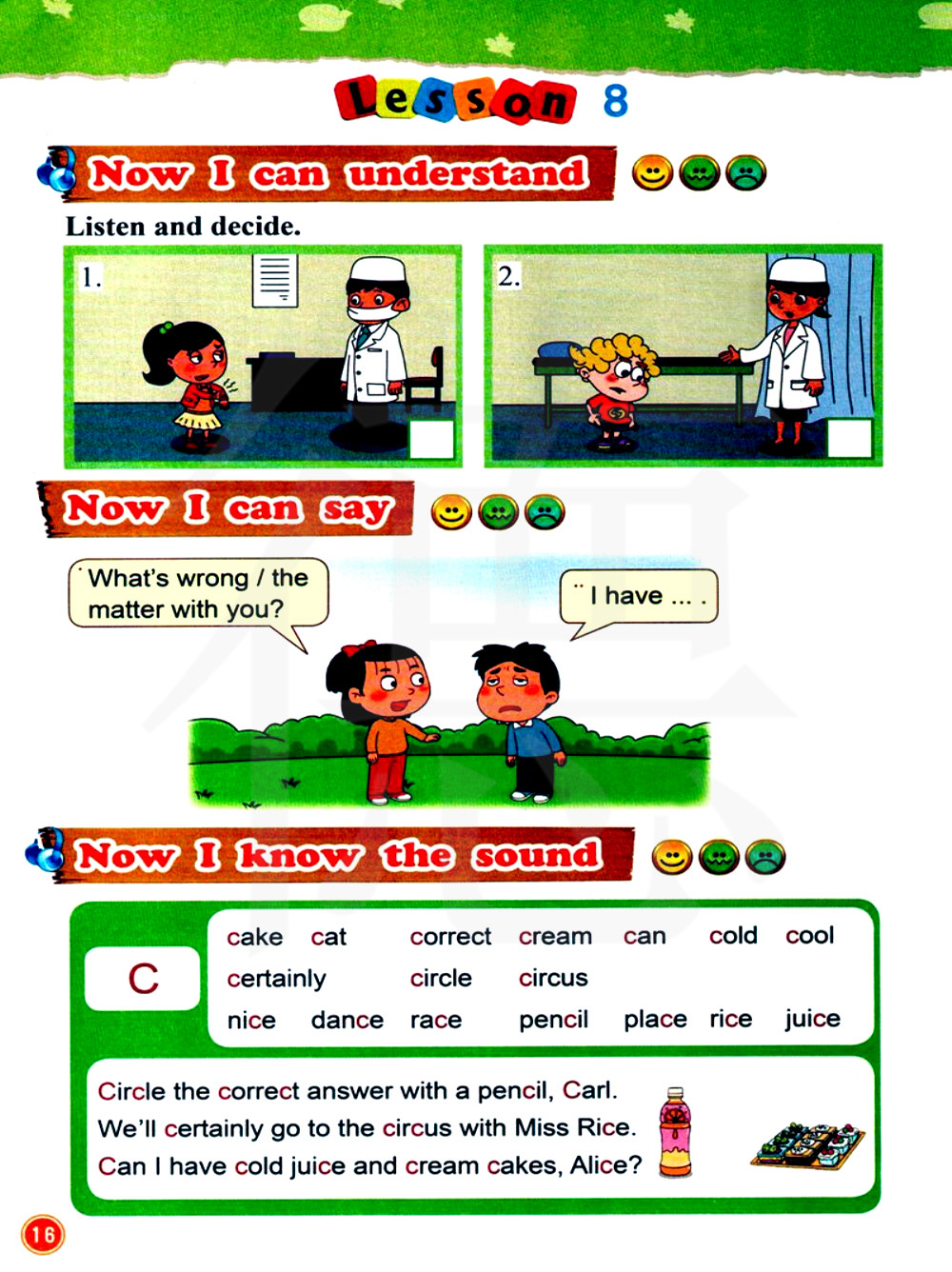 爱丽丝,我能喝凉果汁、吃奶油蛋糕吗?