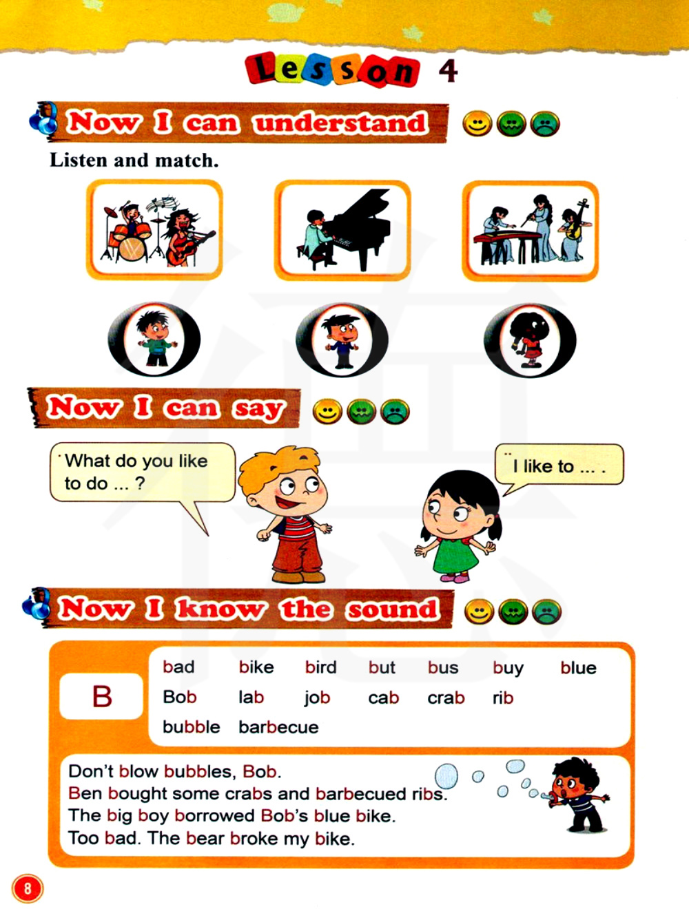 大男孩借了鲍勃的蓝色自行车。.太坏了。熊弄坏了我的自行车。
