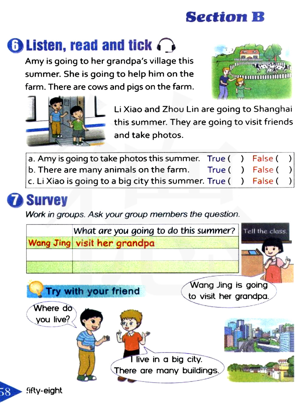艾米今年夏天要去他爷爷的村庄。她要去农场帮助他。农场里有牛和猪。