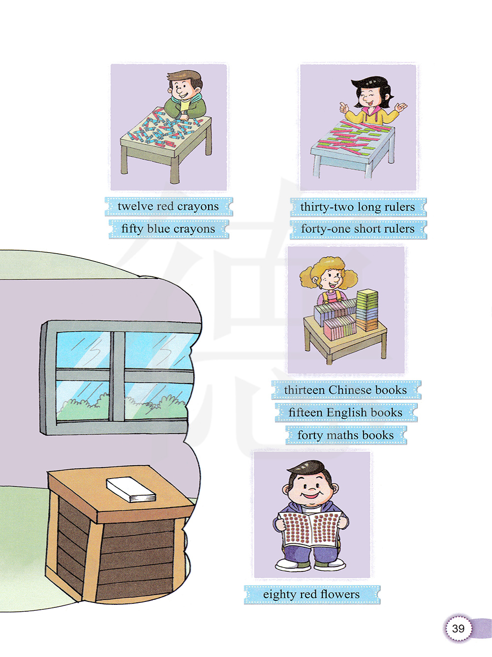 13本语文书 15本英语书 40本数学书
