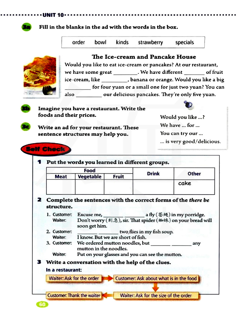 请求点餐 询问食物里有什么 感谢服务员 询问点餐的份量大小