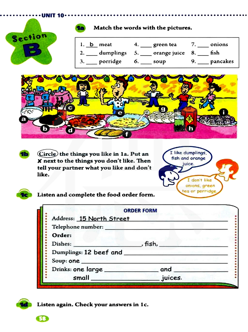 在1a中圈出你喜欢的东西,在你不喜欢的东西旁打叉。然后告诉同伴你喜欢什么和不喜欢什么。