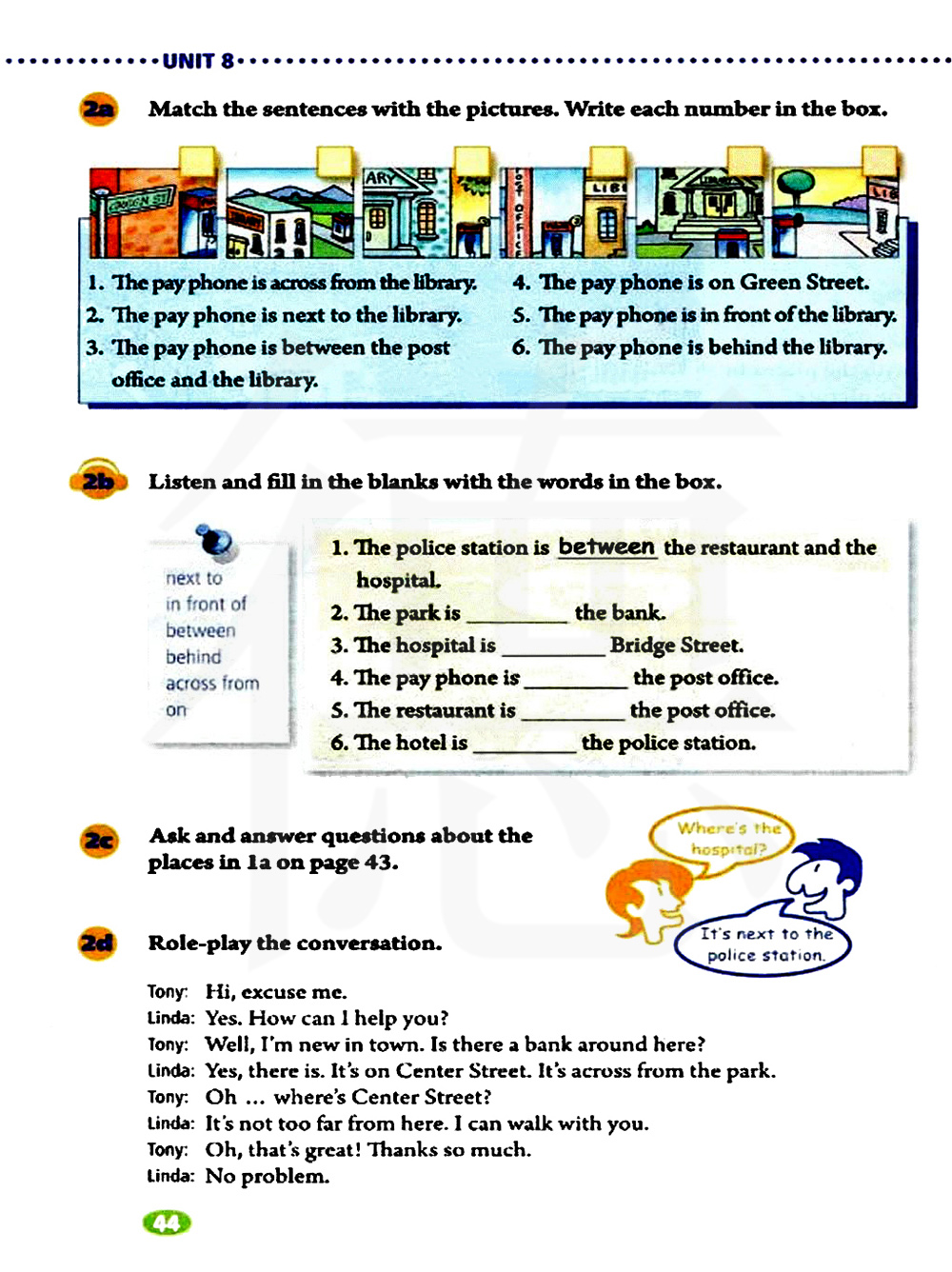 就第43页1a中的地点进行问答.
