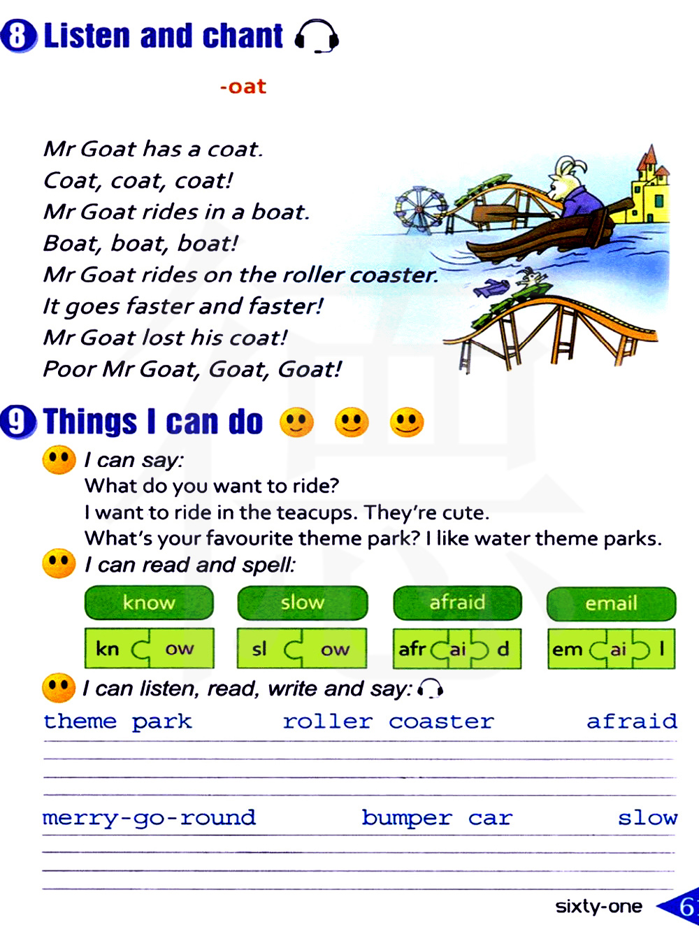山羊先生有一件外套。外套,外套,外套!山羊先生坐在一艘船里。船,船,船!山羊先生在坐过山车。 它越跑越快!山羊先生把他的外套丢了!可怜的山羊先生,山羊,山羊!(歌曲)