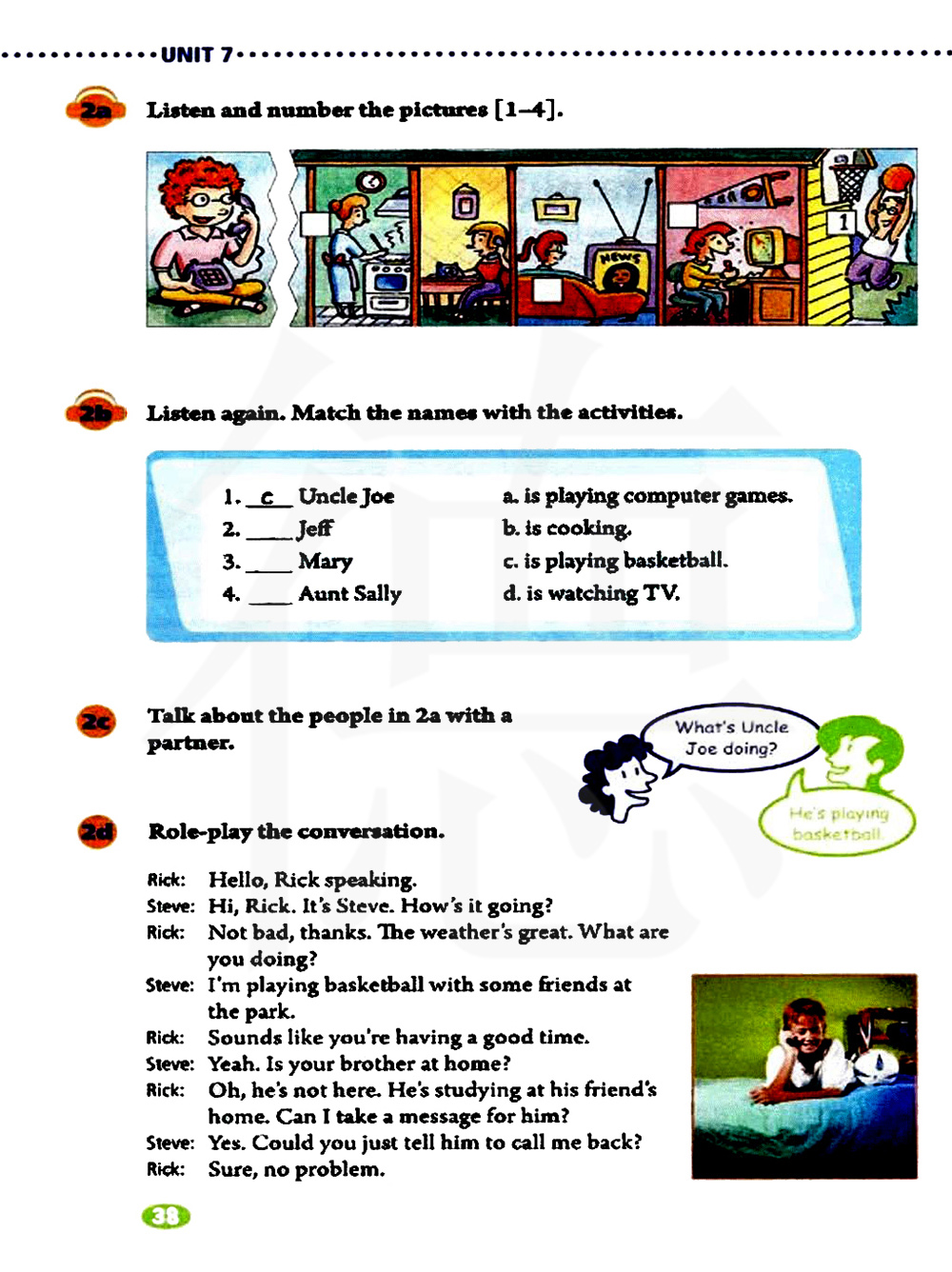 喂,我是里克,里克,你好,我是史蒂夫,近来可好?还不错,谢谢。今天的天气很好,你在做什么呢?