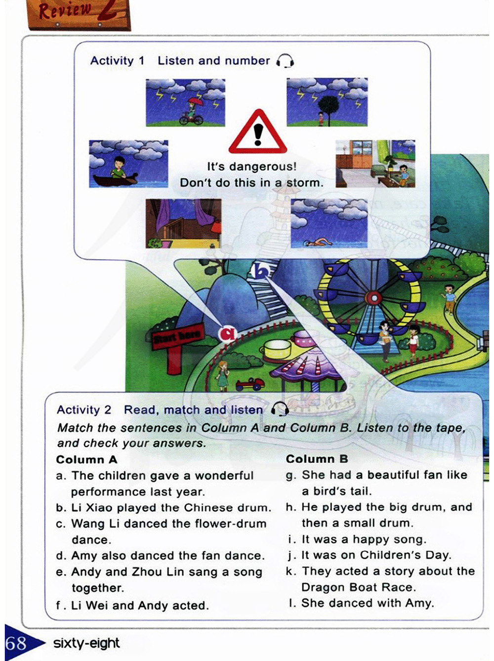 活动2 读短文,连线,听录音。