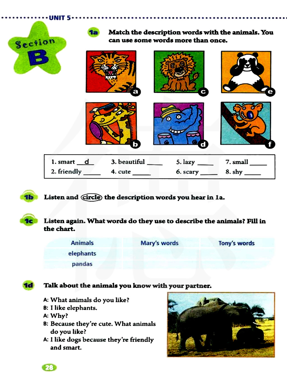 听一遍录音,他们使用什么词语来描述动物。填写表格。