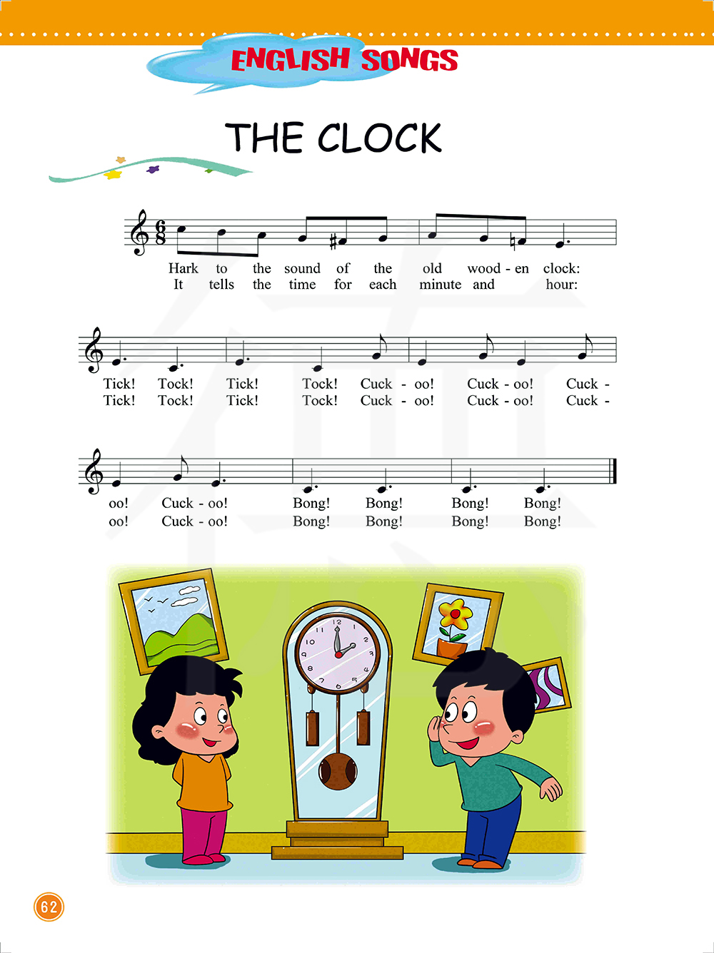听这古老的木制的钟发出的声音:滴答!滴答!咕咕!咕咕! 当!当!当!当!它每分钟每小时都在报时: 滴答!滴答!咕咕!咕咕! 当!当!当!当!(歌曲)