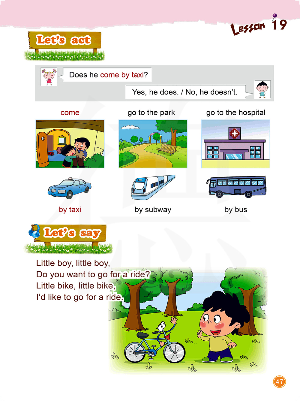 小男孩,小男孩,你想骑车吗?小自行车,小自行车, 我想骑一骑。