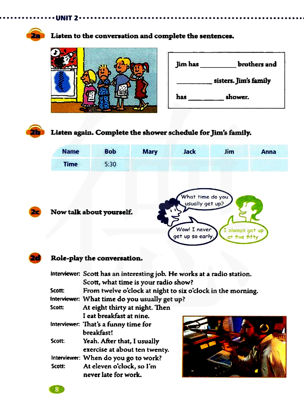 再听一遍录音,完成吉姆一家人呢的沐浴时间表