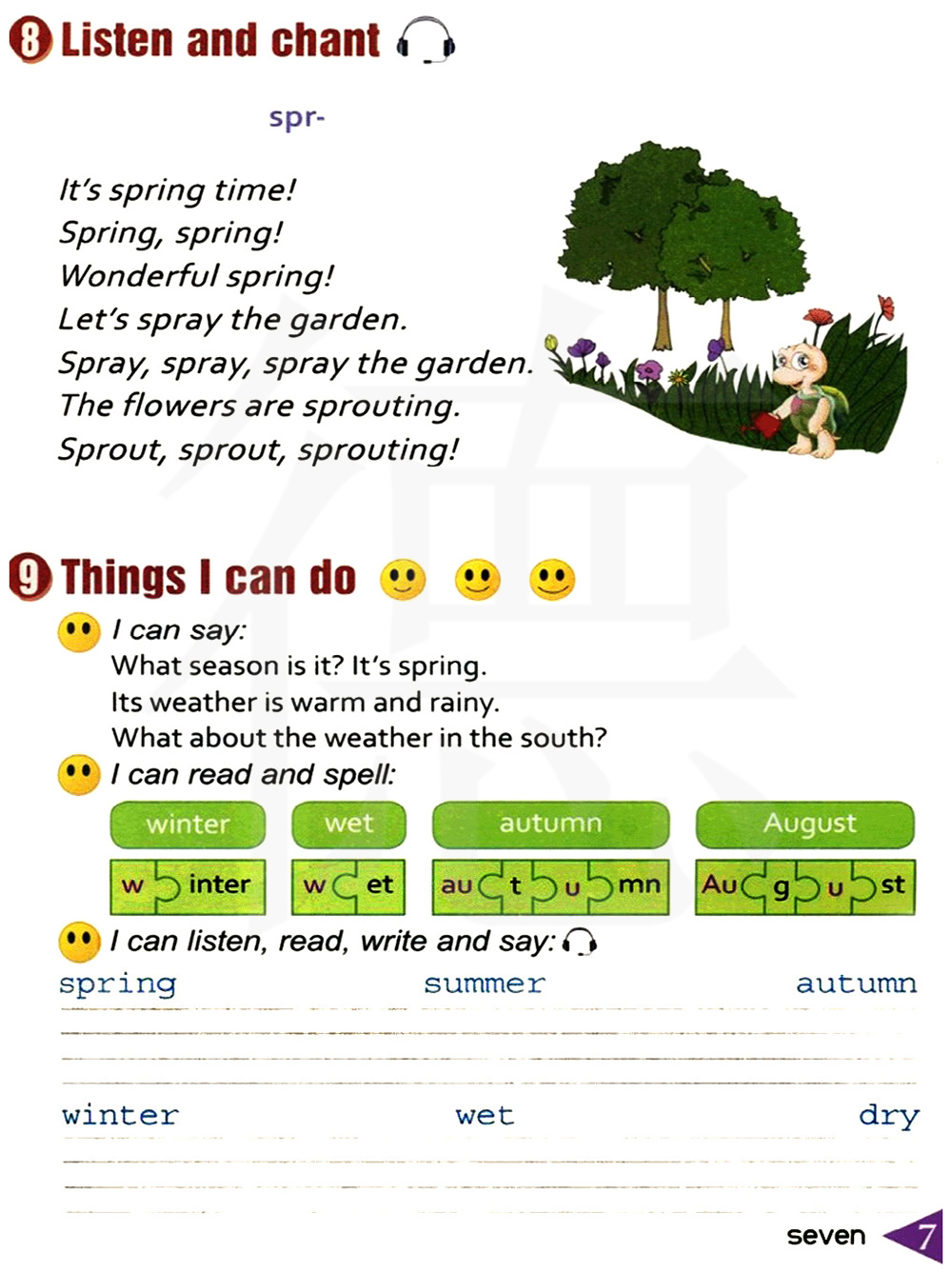春天的时节!春天,春天!美好的春天!让我们给花园喷水。 喷水,喷水,给花园喷水。 花儿正在发芽。 发芽,发芽,发芽!